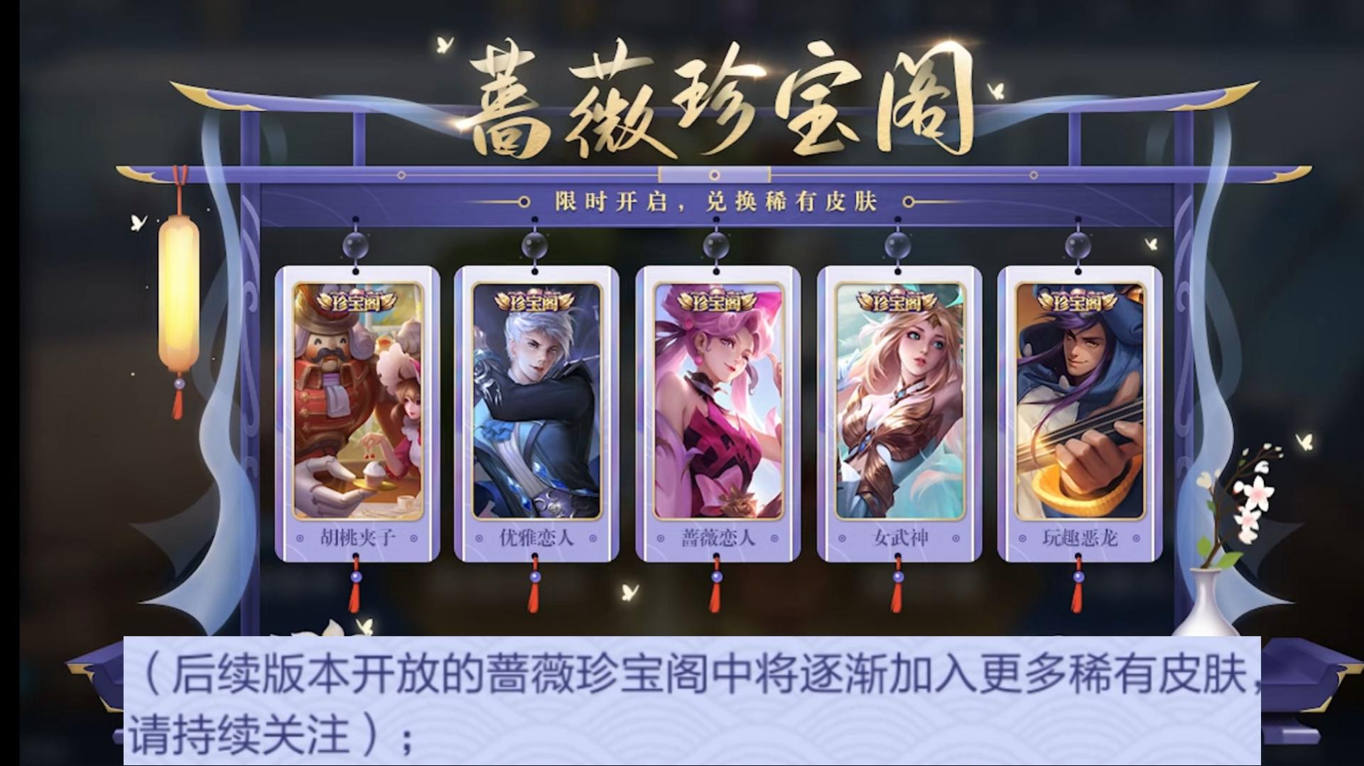 这一次应该没有新皮肤加入珍宝阁,相比之下,我还是建议大家优先兑换嬴政的优雅恋人和孙尚香的蔷薇恋人,因为只有这两款皮肤的品质是最高级的。