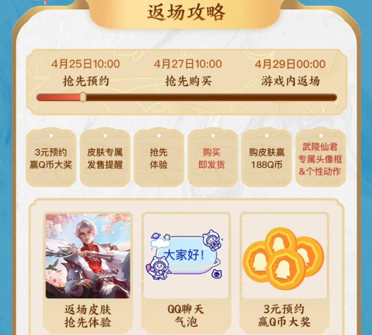 除此之外还有5款稀有皮肤也将会限时返场,同时还会有专属活动上线,感兴趣的玩家要做好准备了。