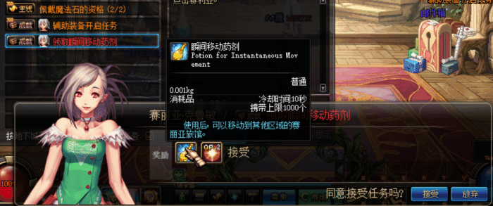 找赛丽亚直接领取药剂,全图传送,还是非常方便的!