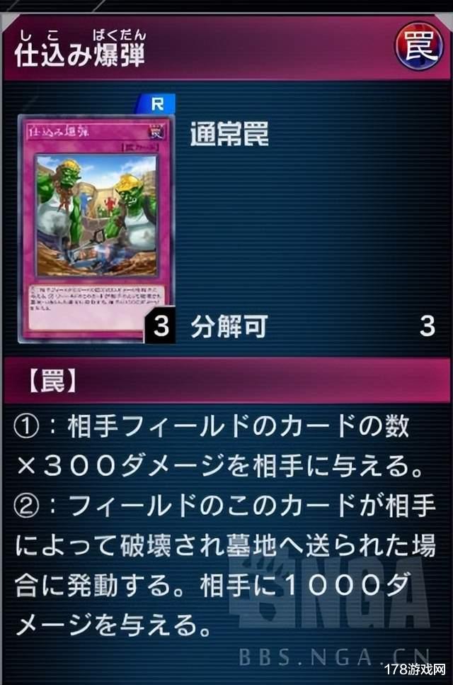 这张专门为电爆和羽毛扫准备的,被破坏的时候就可以发动,给对面场上卡数量X300的加上破坏后的一千,简单来说就是用后场换血。实测之后可以看情况下2~3张。