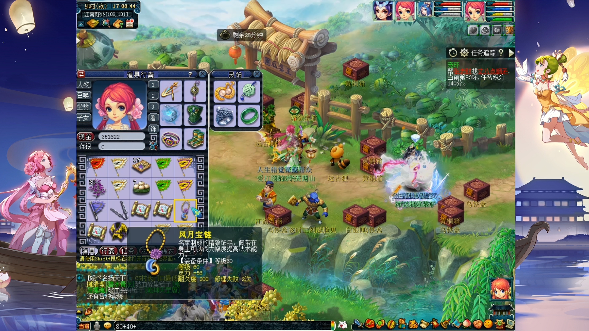 在江南野外,挖到了风月宝链,在墨家村,挖到了一本70级的铠甲制造书,在建邺城,打怪掉落了一把70级的武器,在麒麟山,挖到一块50级的铁,一本50级的制造书。