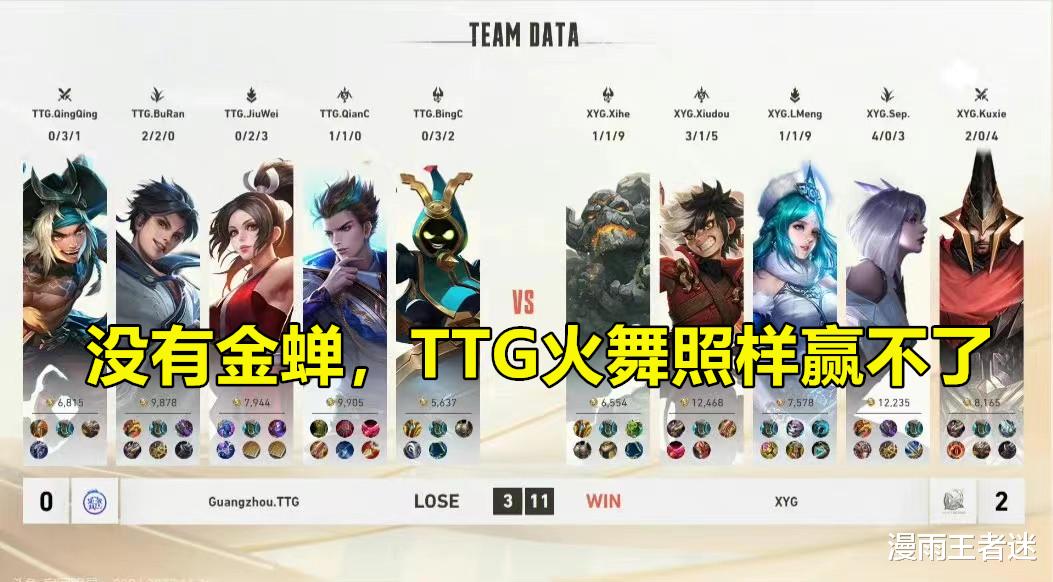 还记得KPL官宣此次世冠ban掉的15个英雄时,不少TTG粉丝看到没有金蝉了,都非常高兴。因为那样的话,他们的主教练张凯就不会再顶着金蝉拿不知火舞,九尾的不知火舞终于有发挥的空间。然而真的是这样吗?第2小局比赛大家伙们也都看到了,没有金蝉,TTG的不知火舞照样赢不了,甚至还直接被XYG平推。拿不知火舞那一局,是这一整场比赛打下来,TTG输得最惨的一局。