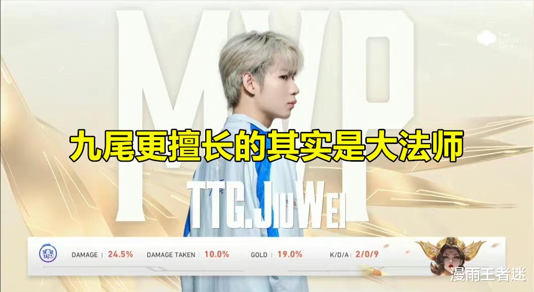 其实,九尾虽然是以法刺成名的,但严格来说他也是hero系的中单。而hero系的中单选手有一个大家都比较熟悉的特点,那就是更擅长大法师。没有错,九尾其实更擅长的是大法师。这不,这一场比赛打下来,九尾的不知火舞虽然表现一般,但是他的武则天跟干将莫邪玩得多好。也就是说,其实这一届世冠的游戏版本,对于TTG的影响是比较大的,毕竟嬴政、姜子牙这两个大法师英雄都没了。而这两个英雄是九尾玩得比较好的中单英雄。