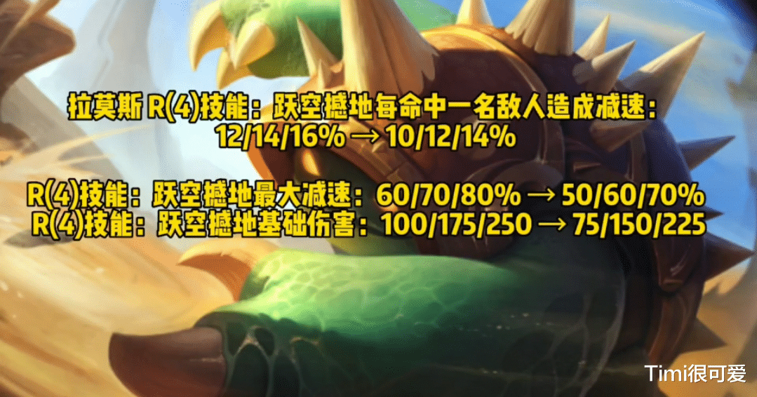 四:龙龟—下调了大招基础伤害和减速效果。