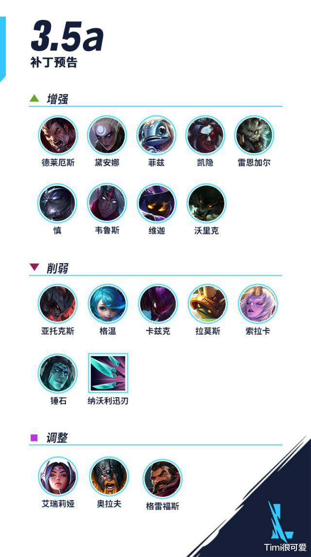 3.5A平衡调整来了。3.5A版本将于12月2号更新,本次一共加强了9位英雄。凯影大幅度增强,剑魔不出意外的被砍了,诺手居然可以打野了。