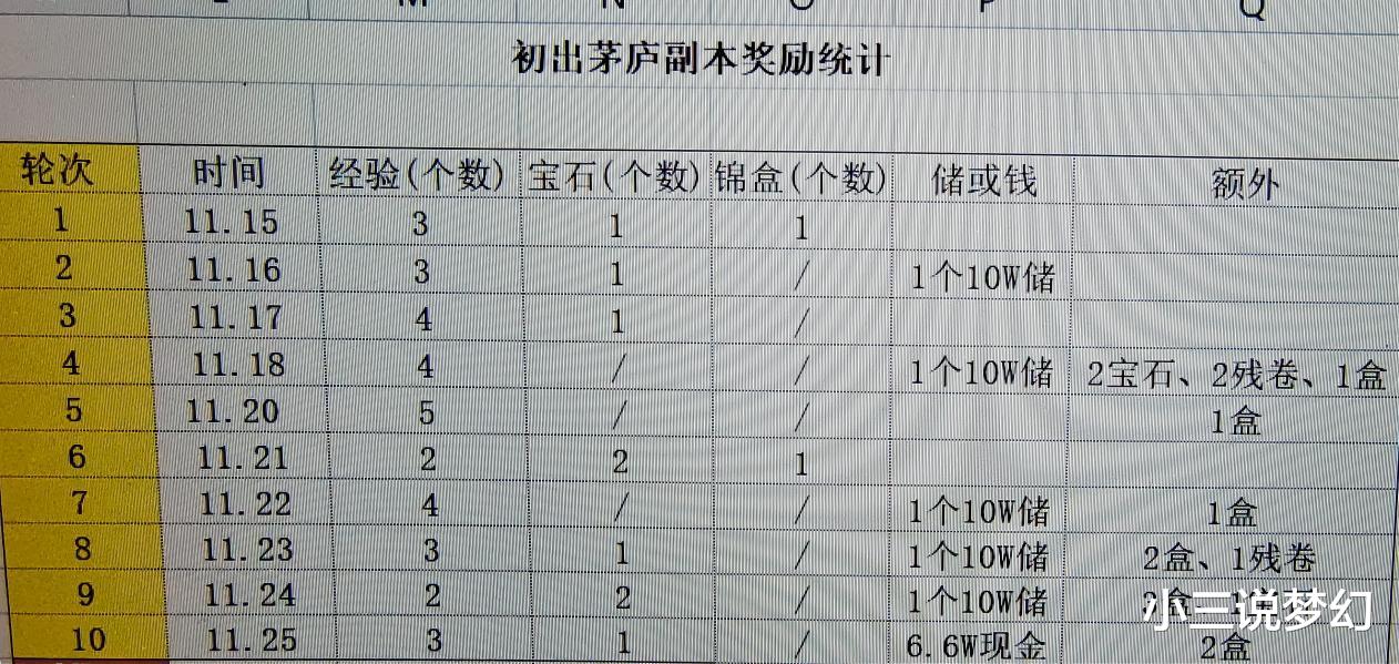 上面这位玩家记录的就是自己刷初出茅庐副本任务所获得的奖励,能够获得大量的宝石,还有储备金奖励呢,对于那种起号阶段的五开来说,这是一个必刷的任务。