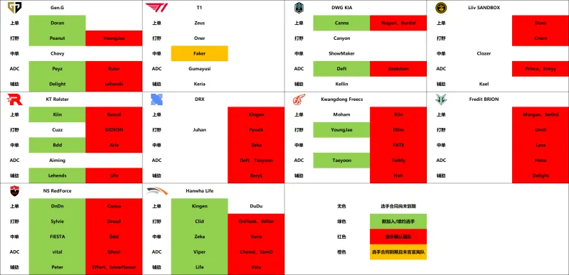 2022赛季转会期LCK各队选手官宣汇总一图流
