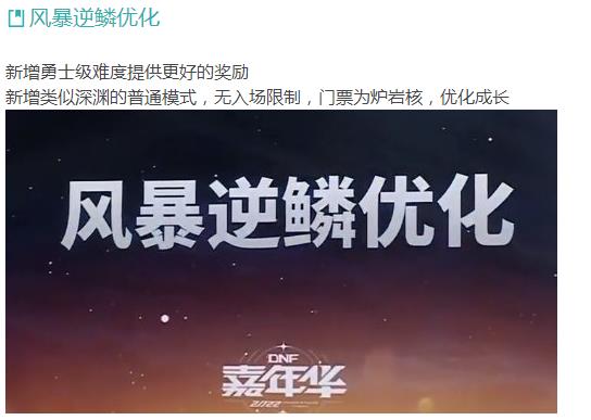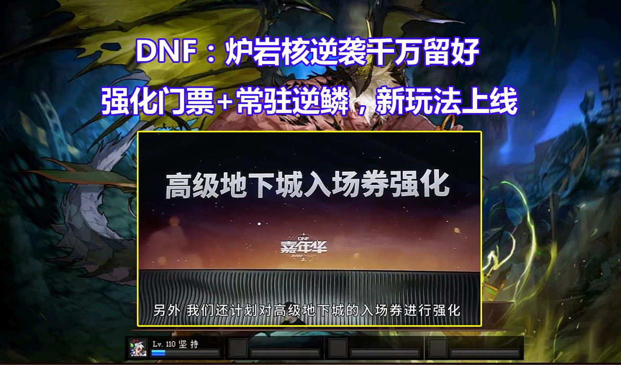 “地下城与勇士之小狐狸君爱谈游戏电竞”第三千四百三十八期《DNF:炉岩核逆袭千万留好!强化门票+常驻逆鳞,新玩法再次上线》,所以玩家可以将这个材料留好了,要知道后期的高级副本会重做的,史诗词条的等级必然提升,没准机械战神和贵族纪要都会加强的。2022年嘉年华发布会再次给玩家送来了新的玩法和爆料,不过大部分都是策划画大饼,毕竟韩服又换策划了,新策划怎么开发,还是一个新问题。老规矩搞快点,直接上本次嘉年华爆料副本改版的实测截图展示: