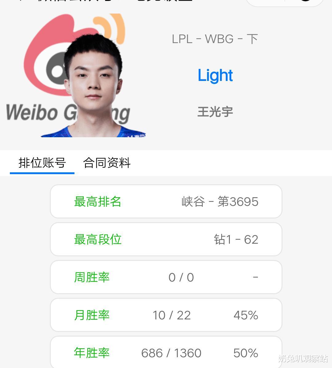从电竞饭堂obgg的资料中可以看到,light选手确实已经成为了微博战队的ADC,可以预想到的是,这个情报应该是十拿九稳了,估计过不了几天WBG就会官宣light的加入。
