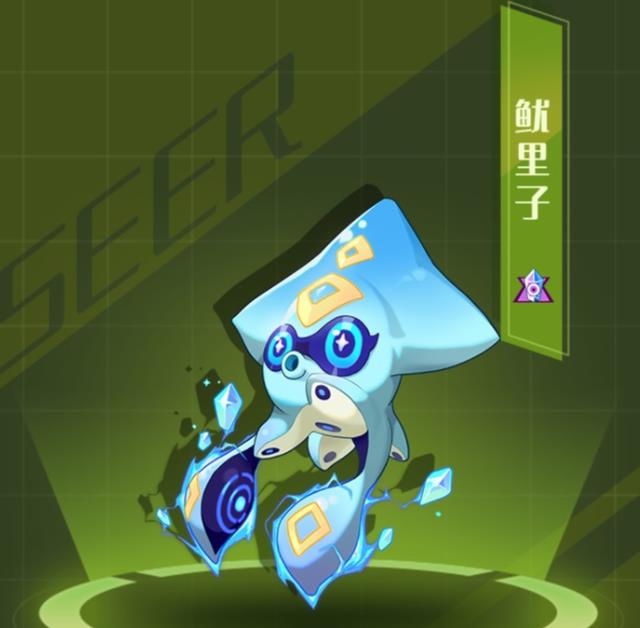 冰超能双属性的鱿里子,活动陪跑,无氪解锁入手的活动精灵,一看就是仓管的定位,作为吉祥物来说,挺萌的,一开始还没发现其面部是怎么设计的,后来仔细看才看出来,这章鱼精灵的造型确实挺有特色的。