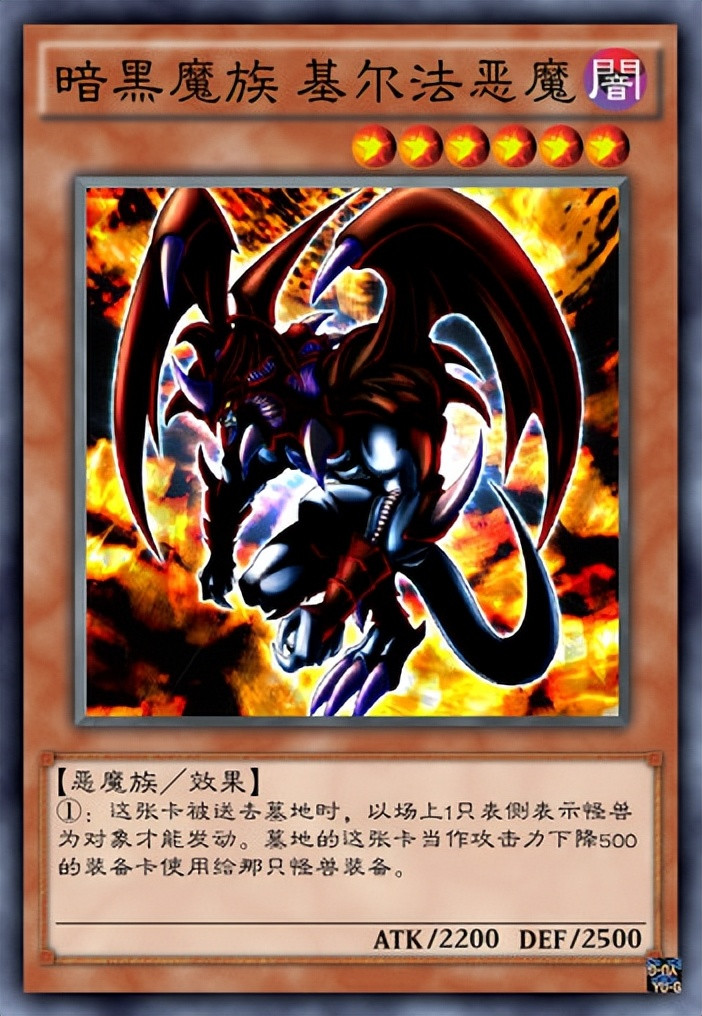 这只怪兽在《游戏王DM》世代还算可以,造型也像暗黑魔族基尔法恶魔。外貌也有点像真红眼的黑龙,在“暗游戏”和“城之内克也”联手对战“海马娱乐公司”的五巨头时出现,暗游戏利用这只怪兽的魔法得益,配合神圣彗星反射力量设下双重陷阱,狠狠地摆了敌人一道。