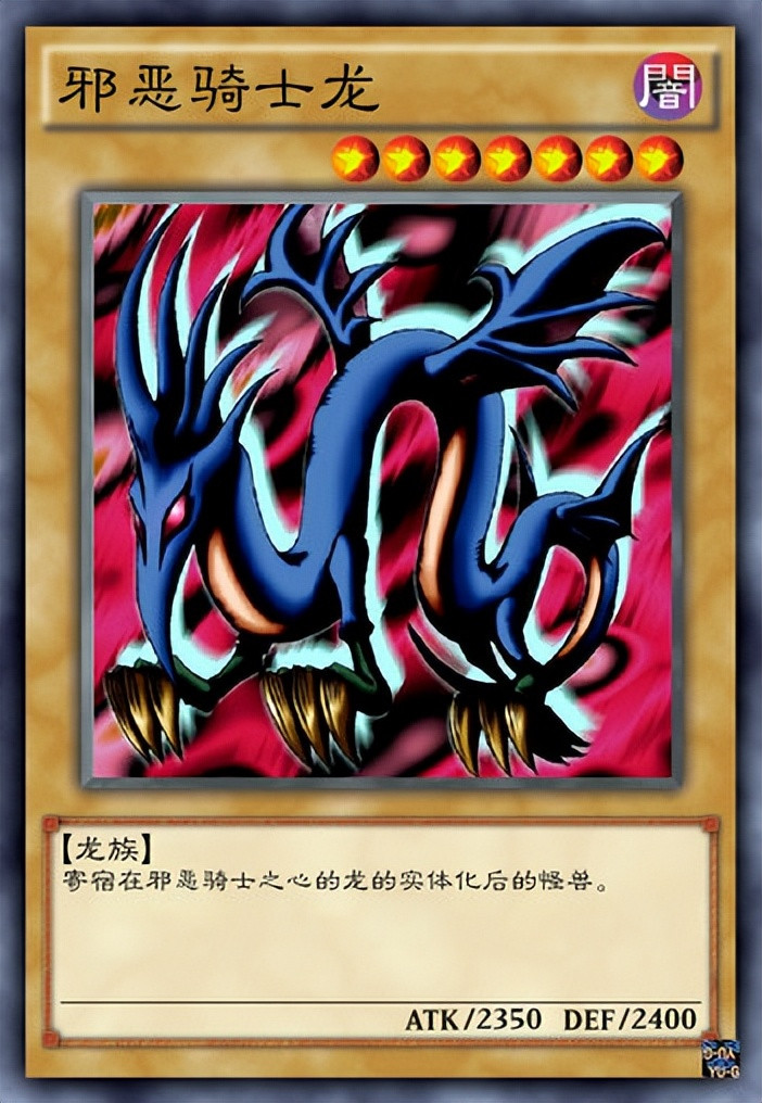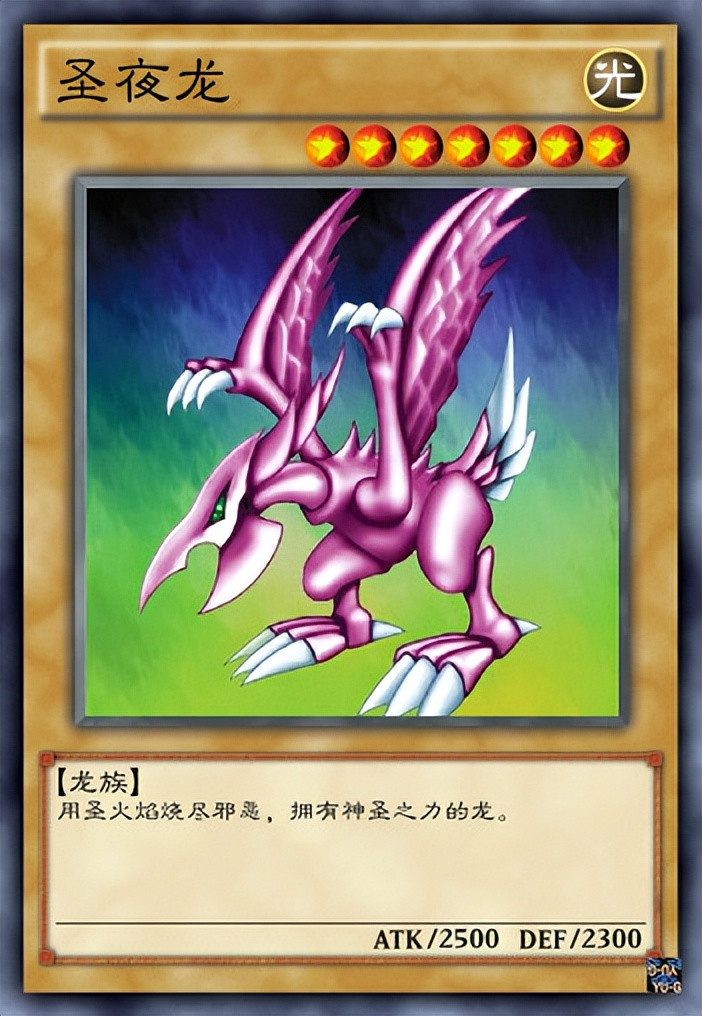 和黑魔术师同分量的怪兽,两者攻击都达到了2500点。而其守备力比黑魔术师要高,据说这只怪兽对应的是“邪恶骑士龙”,这只怪兽是幸运的,宫方为他设计了一系列《圣夜卡组》,“圣夜龙”迎来他忠实的骑士们。