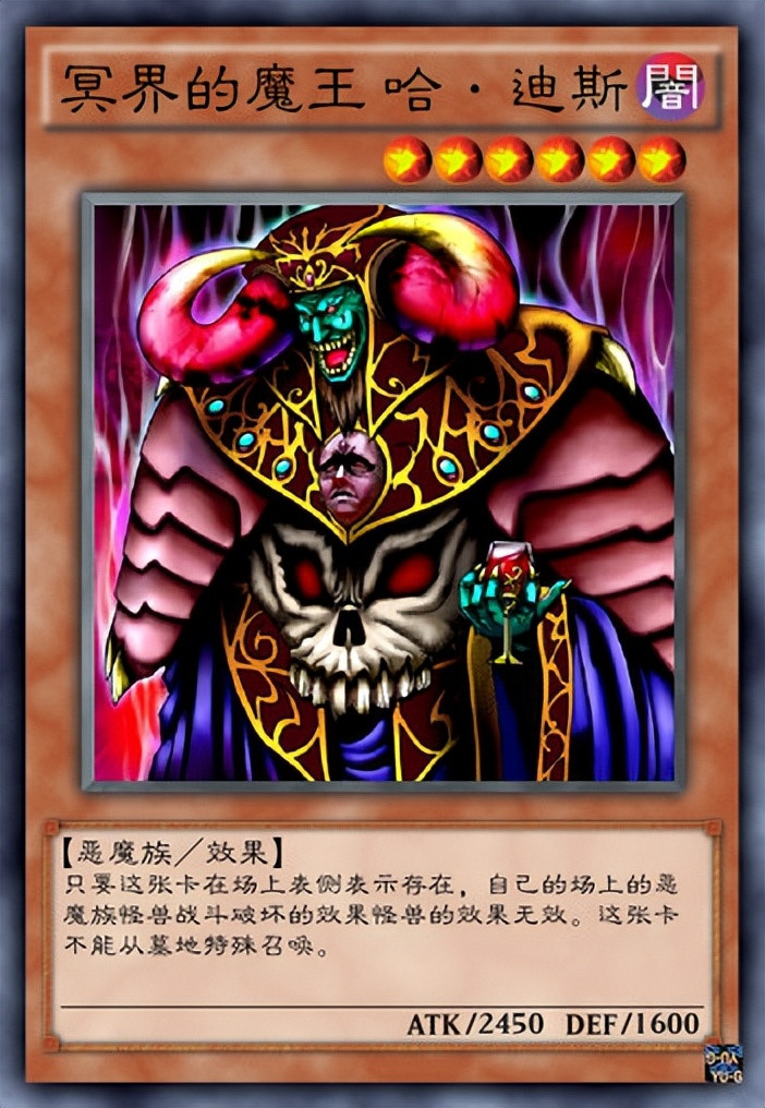 他和冥界的魔王哈·迪斯谁才是真正的魔界之王呢?这只怪兽能从反击陷阱中获得力量并召唤出来,外貌十分霸气,给人一种大邪神的感觉。龙王和冥王的结合体。他是《游戏王R》漫画第1卷附送的效果怪兽。
