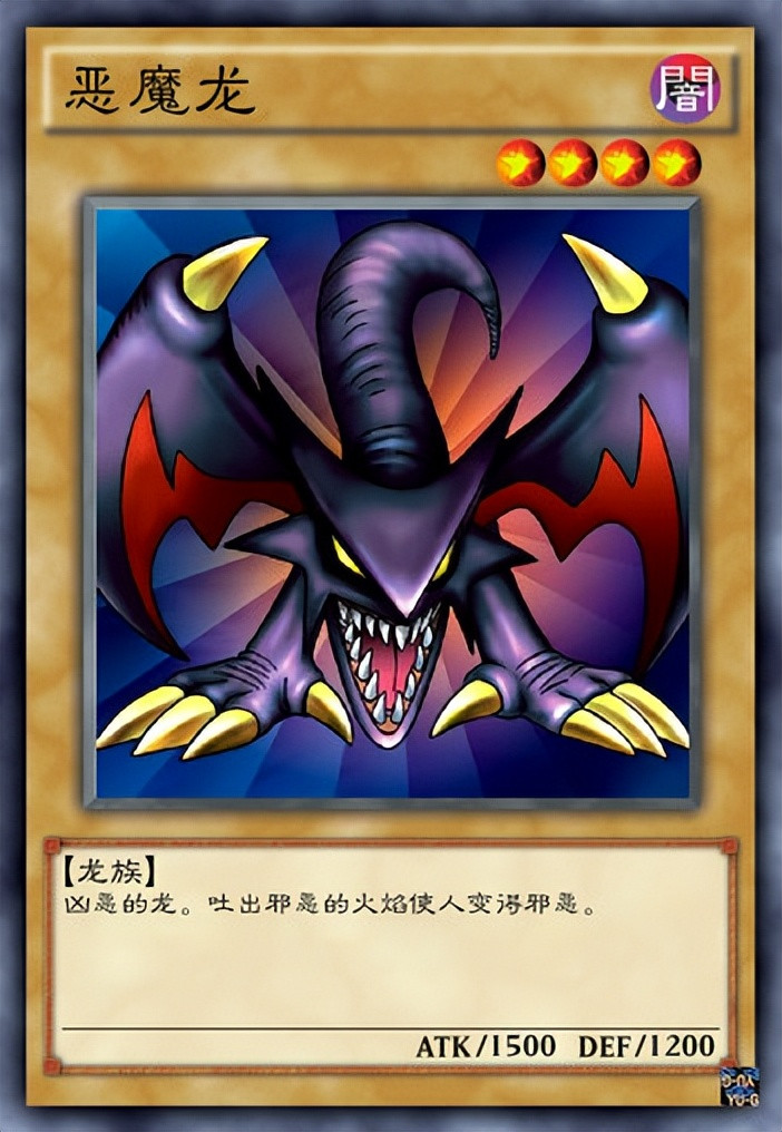 这只怪兽看上去只有头部,样子的确凶狠,但并不是很强的样子,他拥有让人变得邪恶的能力,就是从口中吐息出邪恶的火焰。这张卡的滥用度也十分高,海马濑人和天马夜行都使用过,在前期来说1500点的4星怪兽还不错。其名字兽是让人想到那只攻击力高达3200点的融合大怪恶魔龙黑魔龙。