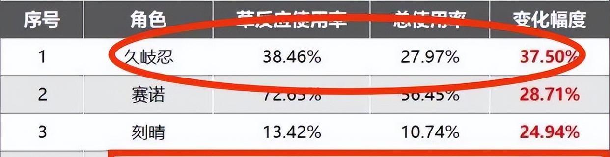 看看这张图片,在某个数据网站上的排名,久岐忍的使用率甚至要比妮露还高,紧接着赛诺、刻晴的出现,对草系的配队影响很大。