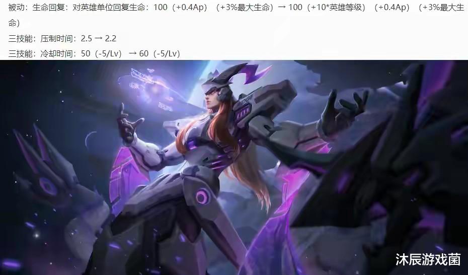 东皇的被动回血效果加强,但是大招的控制时间从2.5秒变成了2.2秒,大招CD也延长了10秒,对这番削弱的猜测,或许是为了迎合下个版本不死鸟、霸者等装备的加强,提前做一手准备,东皇的核心就是大招,不知道此番改动是否会影响到他的胜率。