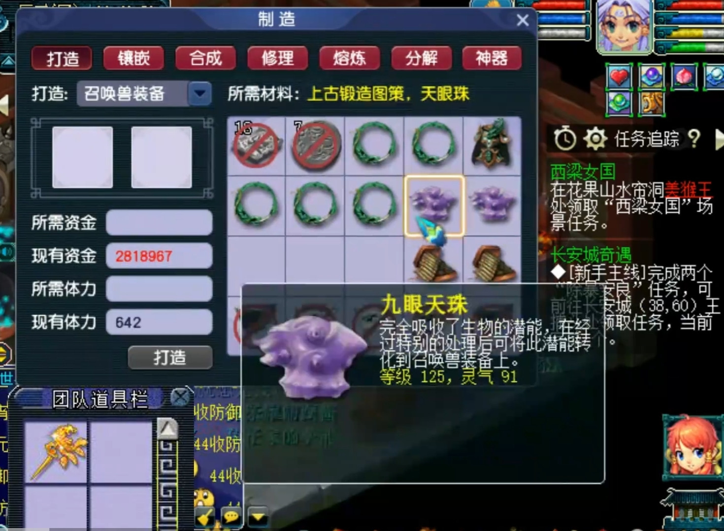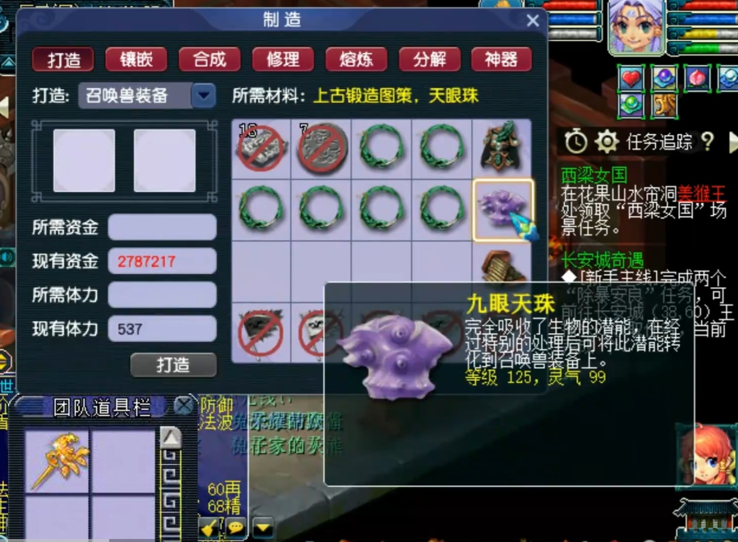 宝宝装备的打造是比较少见的资源,老王偶尔会遇到大老板来挑战这个。前几天刚有一位土豪玩家怒花3亿横扫全区高灵气145级九眼打造装备,最终以67伤害收官。如今又来土豪来挑战系统几率,准备了8个接近满灵气的125级九眼。