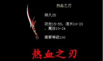 作为当年传奇玩家等级突破100级的标志性神兵,热血之刃也见证了玩家等级的变更,具有划时代的意义。热血之刃这把全新兵器属性是三职业通用的:攻击15-55,道术10-23,魔法10-24,需要等级100。同时热血之刃的外观非常好看,哪怕是很多早早退游的老玩家都忍不住要点赞。这把经典神兵经历这么多年之后依然很热门,在官服和非官服里面都依然闪耀。