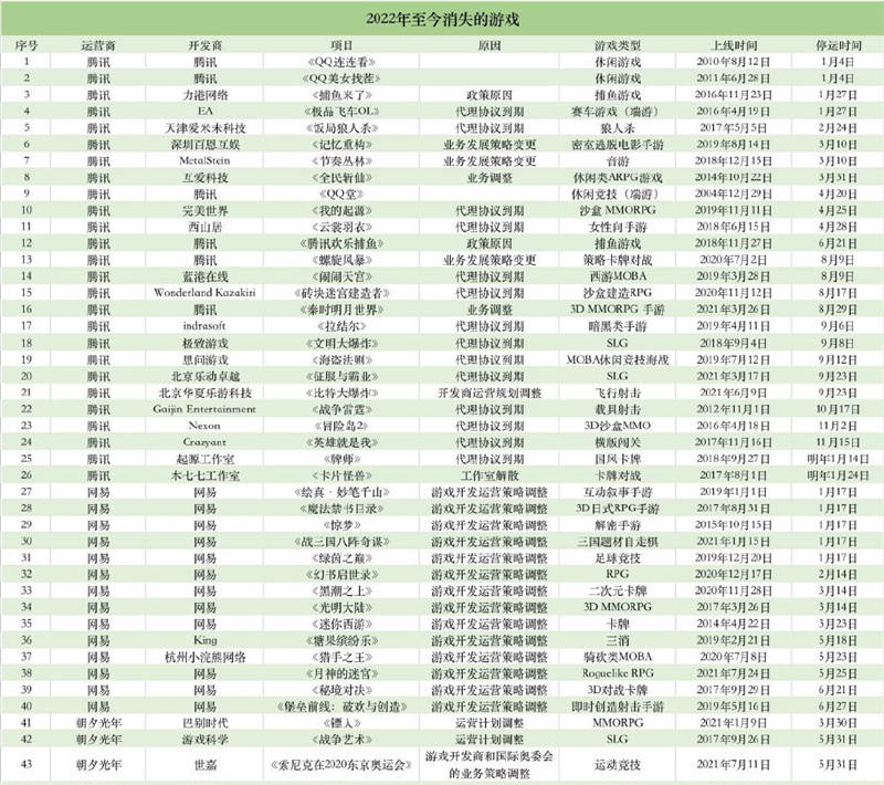 根据《时代财经》报道在2022年国内有超过75款游戏选择了停服或者是停止运营,其中“鹅厂”多达26个、“猪场”14个、B站10个剩下的为其他厂商,米哈游也有项目停止了开发,之所以会出现这种现象小武认为有以下三点原因。