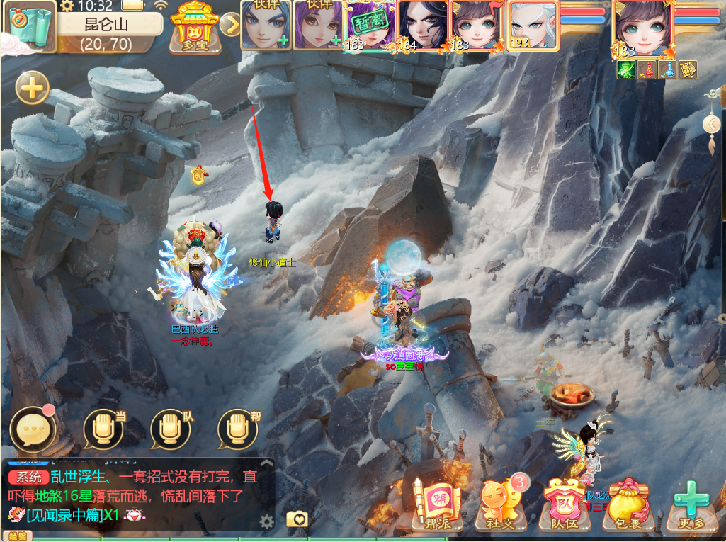 3.玉京山,在昆仑山坐标(20.70)附近有修仙小道士,对其使用个性动作“施法”。