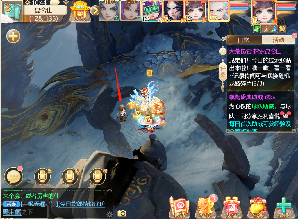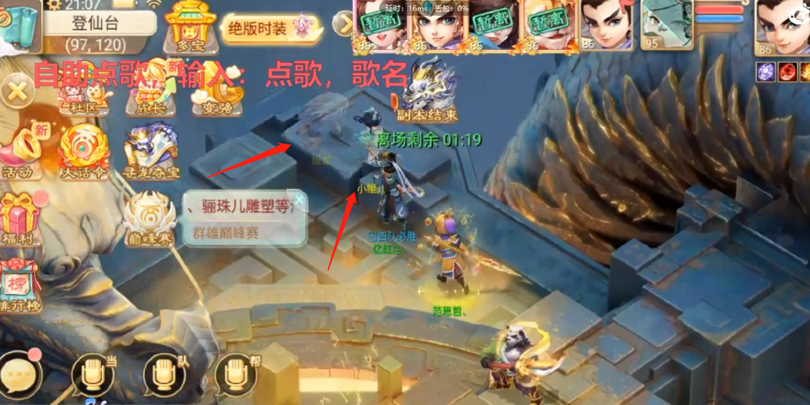 2.日出东方,副本胜利后停留在登仙台上,找到小昆儿与应龙,在当前频道发送“倾听”