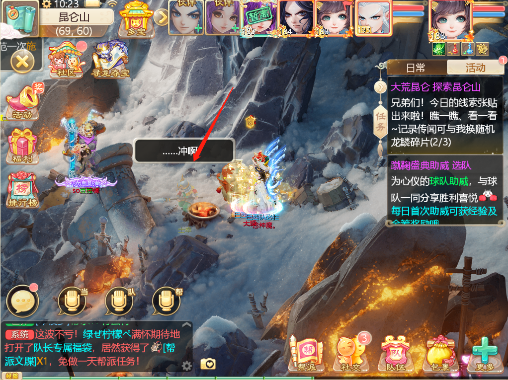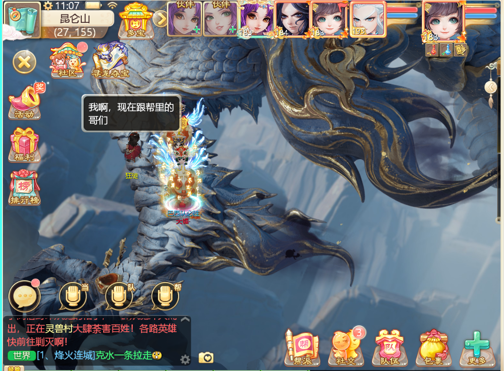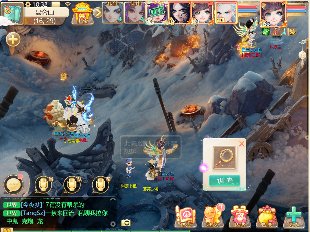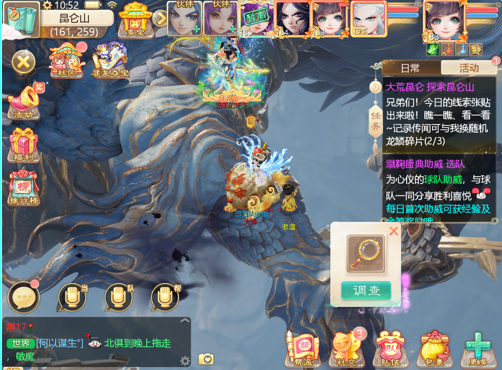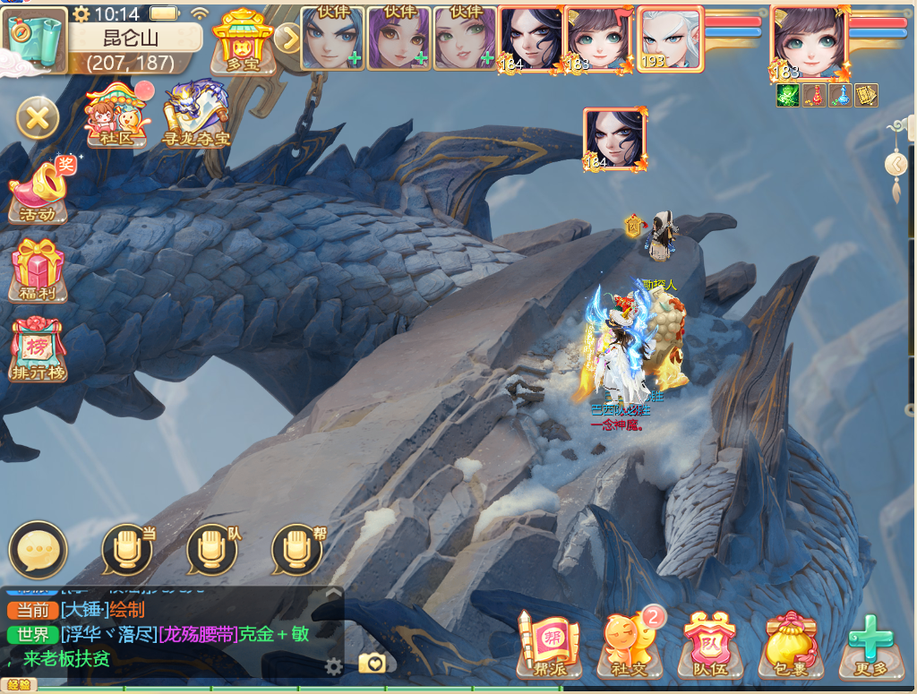 3.云中窥龙,在昆仑山坐标(207.187)附近调查,并在当前频道发送“绘制”二字。