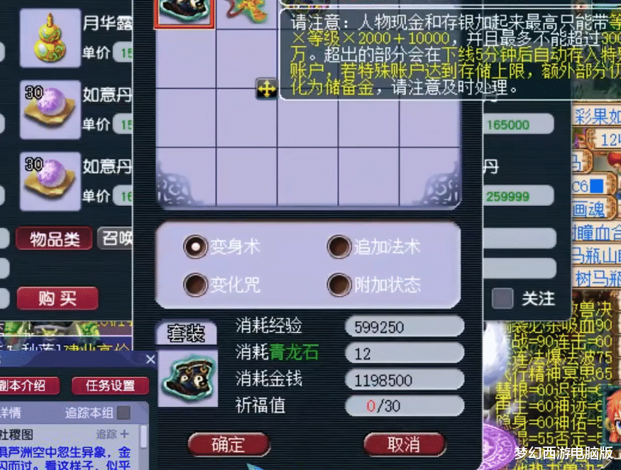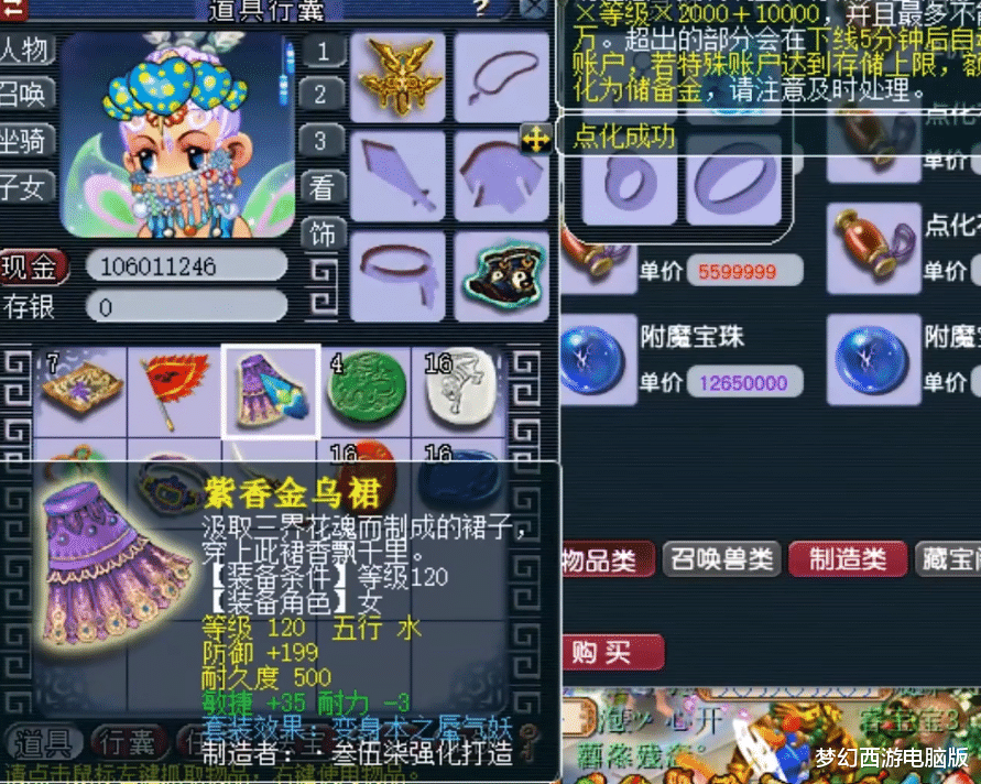 居然点化出了顶级魔力套!要知道,变身术根据其增加的属性,一共可以分为5种。也就是说,每次点化时出魔力套的概率,是五分之一。然后,在这个概率里再随机!由此可见,一下就点化出顶级魔力套有多难。