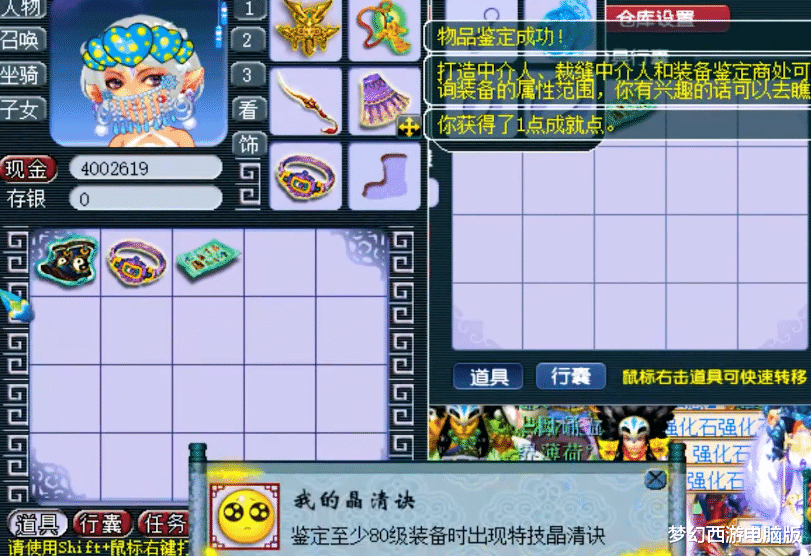玩家原本是想鉴定两件装备,提升下自己的属性。让人万万没想到的是,在鉴定120级靴子的时候,居然解锁了“我的晶清诀”成就。