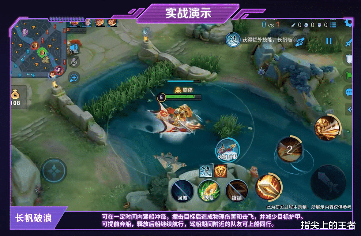 元气弹照搬的是诸葛亮的大招,而长帆破浪是搬运的孙策的大招,让所有人都具备开船的能力,那么可能上一秒敌人在上路,还没留意已经跑到了你的身边,撞到人后减少目标的护甲,这一效果外,几乎和孙策大招的效果如出一辙。