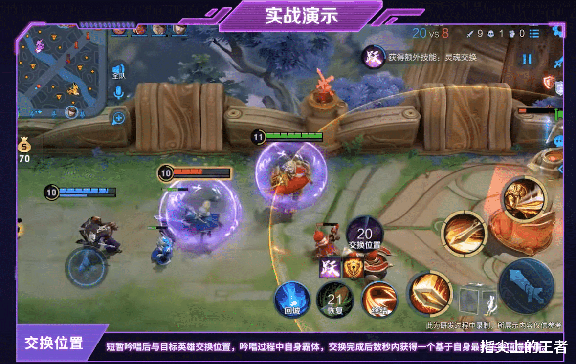 这个技能可以衍生出非常多的玩法,比如辅助强换塔下输出,配合队友击杀,即便一换一也是值得的,敌方冲进水晶,自己站在泉水和敌人换位置,稳定拿头,或者敌方逃走,己方追击,和敌人换位置后就能让队友击杀,想想的确挺好玩的。