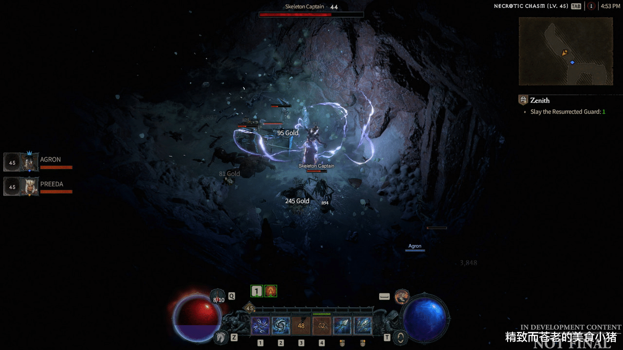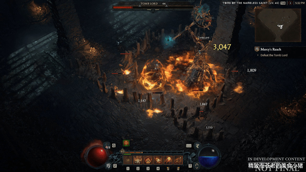 最后来谈谈战斗,战斗本身的打击感、法术特效都没有问题,这些都是暗黑过往就有的强项。 除了「系列名产」的小王随机属性也健在之外,这次的《暗黑破坏神 IV.》在主线、每个地下城最终的头目都引入了一些各自的特殊攻击手法,在演出上也华丽了许多。