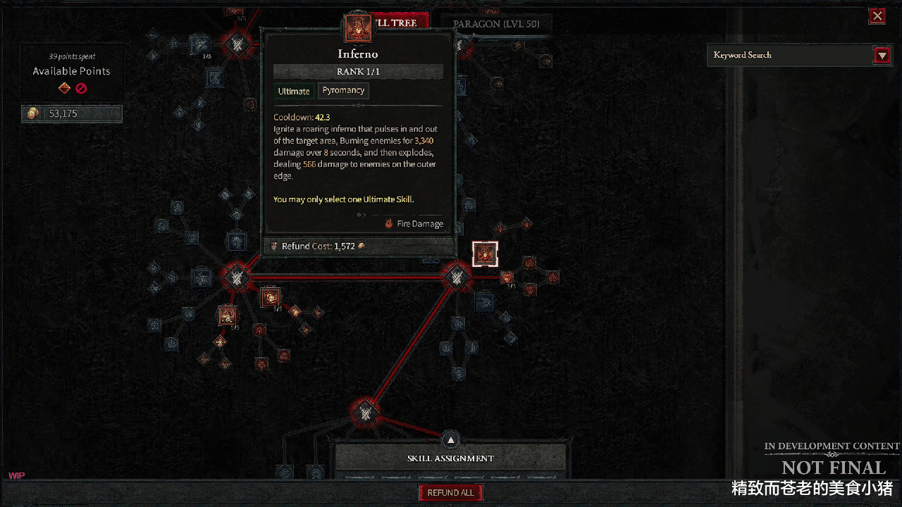 这次的技能树更有点像是技能群组的概念,在第一个群组(主要技能)中挑出你要点的技能,投资一定点数后就可以前往第二个群组,以此类推,25 级的点数已经足够让玩家点出最后一阶段的大招,但一些让技能强化用的点数就还不够。