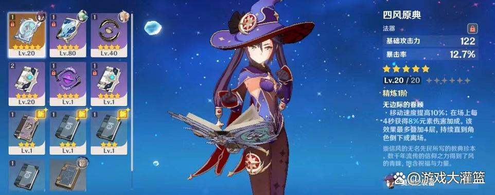 首先流浪乐章针对的莫娜的基础攻击和爆伤属性进行提升,满级效果的流浪乐章可以提升莫娜55.1%的爆伤和510点的输出,主要就是输出伤害的加成。