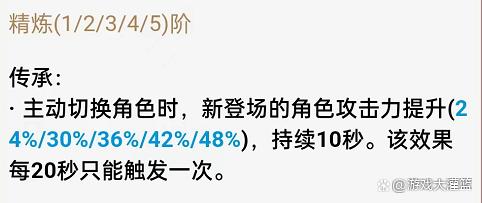讨龙的特效技能传承,能够在切换角色后,强化莫娜的输出伤害,最高可以提升48%,为辅助类角色提升自身对队友增伤的武器,适合辅助角色。