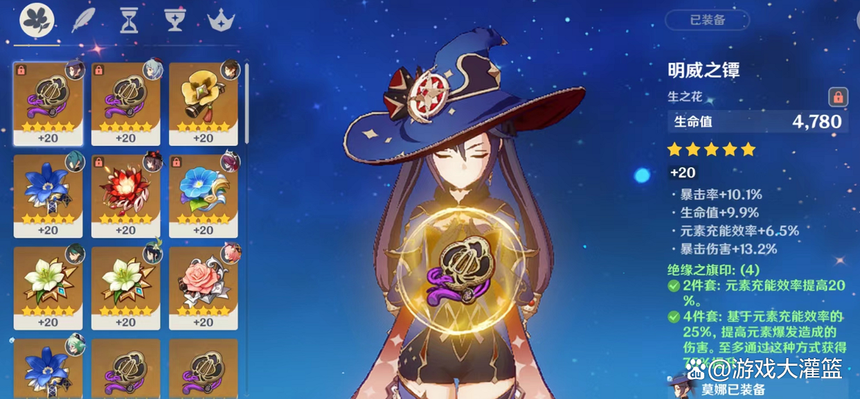 圣遗物方面,绝缘之旗印和宗室四件套即可,绝缘补充充能,宗室增幅莫娜攻击。阵容搭配推荐与温迪、甘雨、迪奥娜进行组队,天赋加点顺序EQA。