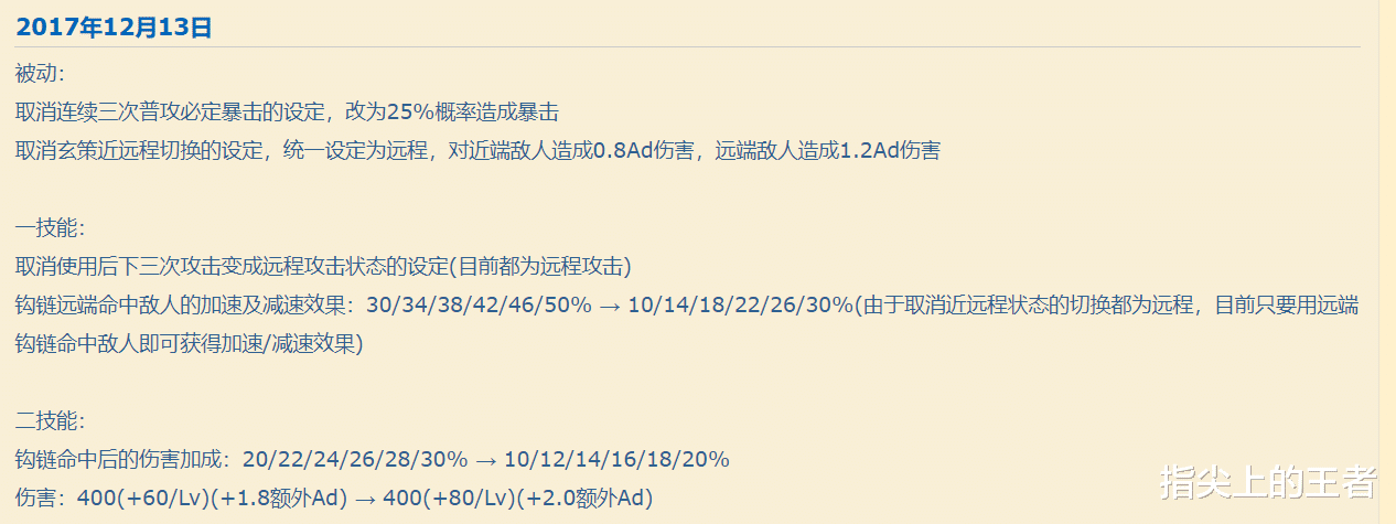 玄策曾经的机制砍掉了太多,比如,普攻第三次必定暴击,后来取消,普攻远端加速/减速最高50%降至了30%,像什么攻速成长、二技能的移速、触发被动后的狂暴加成、二三技能返还cd比例、大招AD加成等等。
