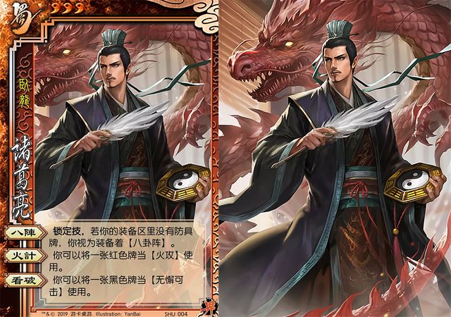 第二位武将就界卧龙诸葛,作为司马懿的老对头,卧龙诸葛也获得了提升。他的三个技能有两个没有发生任何变化,同样是保留了原版的味道。不同点在于界卧龙诸葛的技能【看破】,原本是只能将手牌转化为【无懈可击】,但是界卧龙这个可以将装备牌进行转化打出。这想法和这司马懿如出一辙,我怀疑这两个武将是不是同一个人设计的。同样的创意用在两个武将上面,一点创意都看不出来。