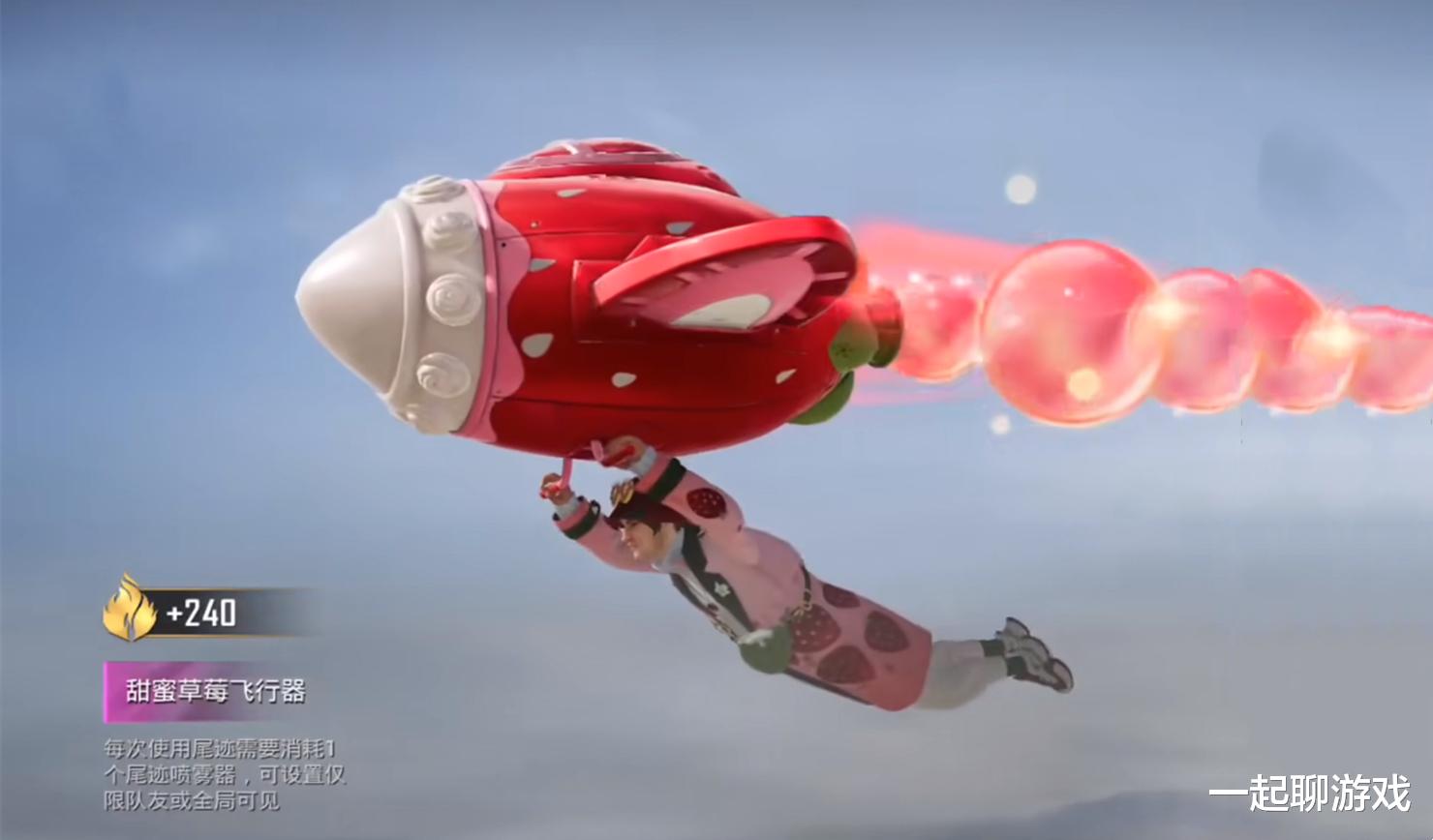 最后我们来看一下飞行器,又是光子的“老套路”,采用“手持”姿态使用的类型,外观就像是草莓、奶油制作的蛋糕一样,尾迹会出现红色气球,看起来同样没有什么亮点,只能算是来凑数的吧~