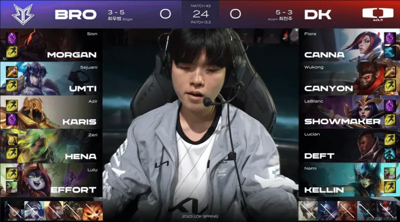 DK选用:Canna剑姬、Canyon猴子、ShowMaker妖姬、Deft卢锡安、Kellin娜美