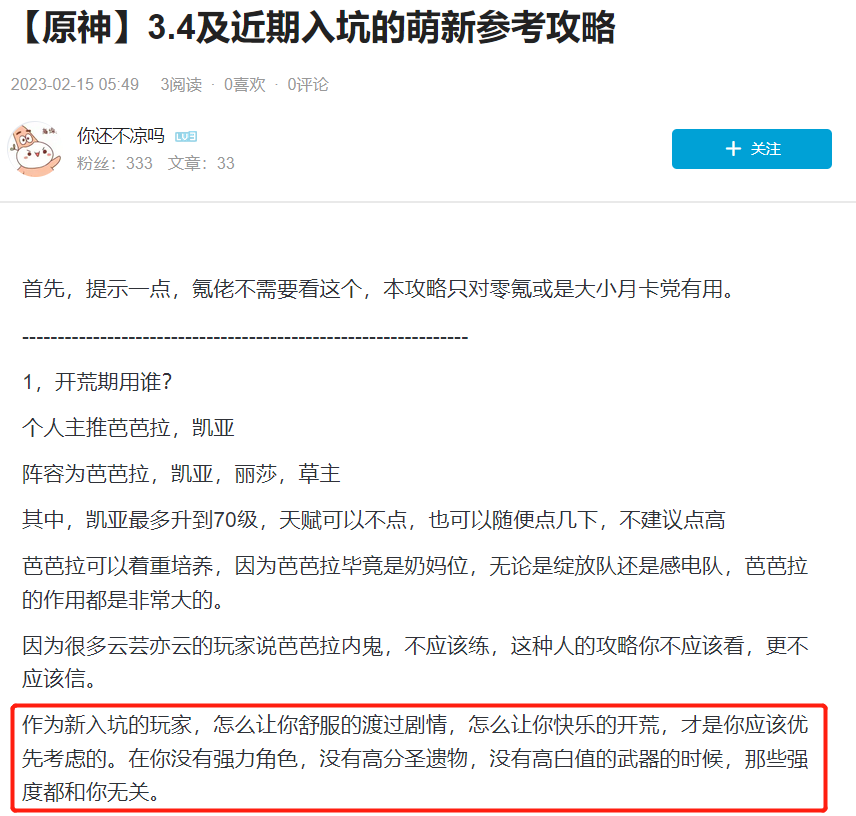 而且伴随着3月1日3.5版本的来临,萌新玩家们(如果舍得快速肝)也许可以见证今年第一批大规模更新——水之国枫丹的加入。每一个全新的地图以及其上面存在的文化的揭示,都代表着一次全新的探索开启。更多有趣的人物、景色和故事线也会给大家带来更有趣的体验。