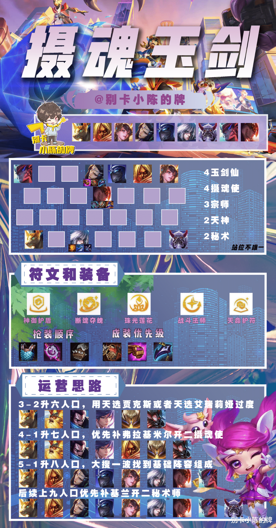 阵容羁绊:4玉剑仙4摄魂使3宗师2天神2秘术