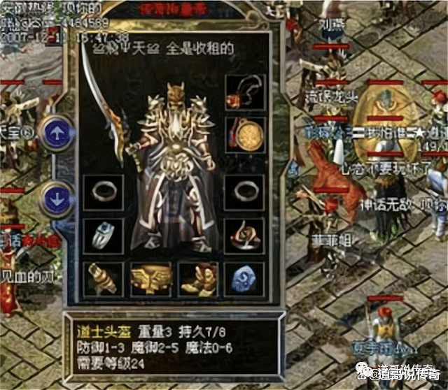 传奇皇帝的装备可以说是法师界的“唐吉柯德”,镇天和凤天魔甲这类顶级装备都不算亮眼,真正亮眼的还是那些大极品装备,敏4魔8的辟邪手镯一对,和老唐的准3攻9夏普儿手镯算是“门当户对”了。他还有一顶防御1-3,魔御2-5,魔法0-6的超强道士头盔,他还有一把魔15,运6的骨玉权杖,此外还有护身等特戒系列一样非常牛掰,这样的大法师不排第一都说不过去。