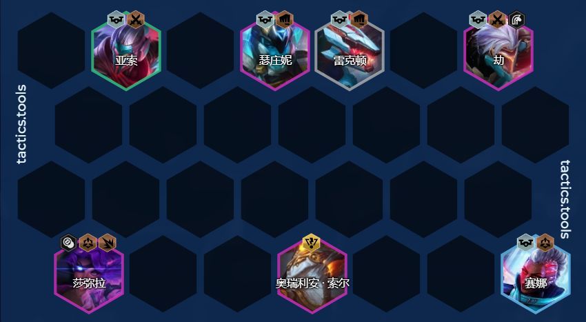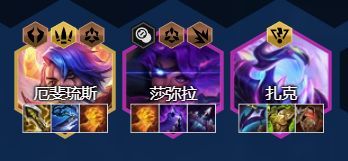 莎弥拉的装备优先考虑最后的轻语和夜之锋刃,这两个装备已经是莎弥拉必备的,最后一件装备可以补充恢复或者伤害装。如果8人口优先找到2星厄斐琉斯,可以考虑不用莎弥拉来C.