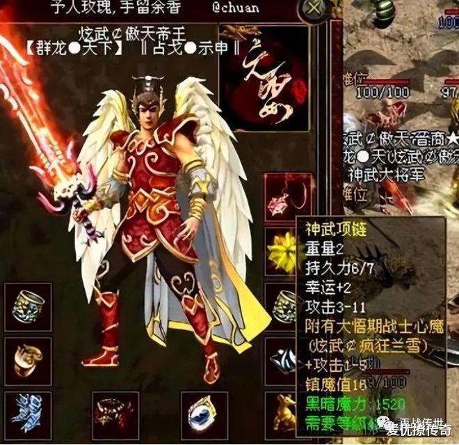 3、帝王:真正一统五羊的大佬,从100区霸日转区而来,凭借强大的个人实力和交际能力,在酒鬼和星月皇后等人的帮助下完成了五羊的一统,他身上最具代表性的就是那条功12的神武项链,能达到这个攻击的项链,当年整个传世服务器估计都是独一份。