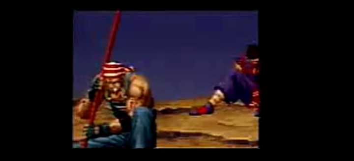 而京也认出了他,通过京和大门还有红丸的对话可知,在kof大会之前的“野试合”(场外对战)中,此人轻易的打败了草薙京。