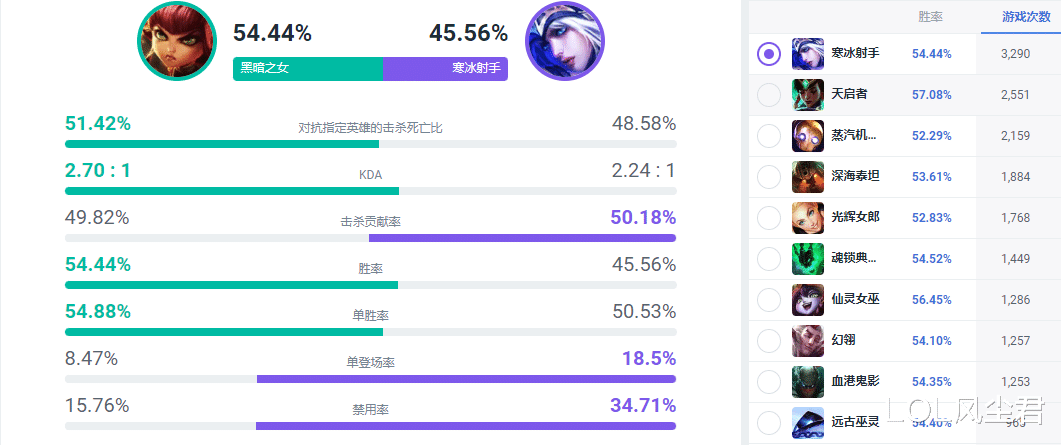 造成这种局面的主要原因,是辅助位置主流英雄过于奇葩,咱们较为熟悉的大头、寒冰,都是目前T1级别的英雄,在路人局和职业赛场,都有很高的优先级,AD英雄的选择,往往也需要和这些英雄都一度的配合性,在安妮重做之后,“奇葩”强力辅助又多了一位,54.88%的胜率,让安妮稳坐版本辅助一姐的位置。
