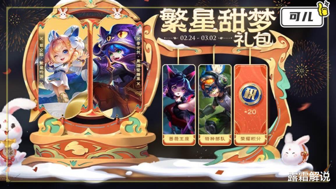 包括两款皮肤的返场活动,这次返场的是李元芳的黑猫糖果和蔡文姬的源梦皮肤,一款勇者一款史诗,共同点是当初都只卖六块钱,而这一次返场是抽奖,保底价格为2000点券得两款皮肤。