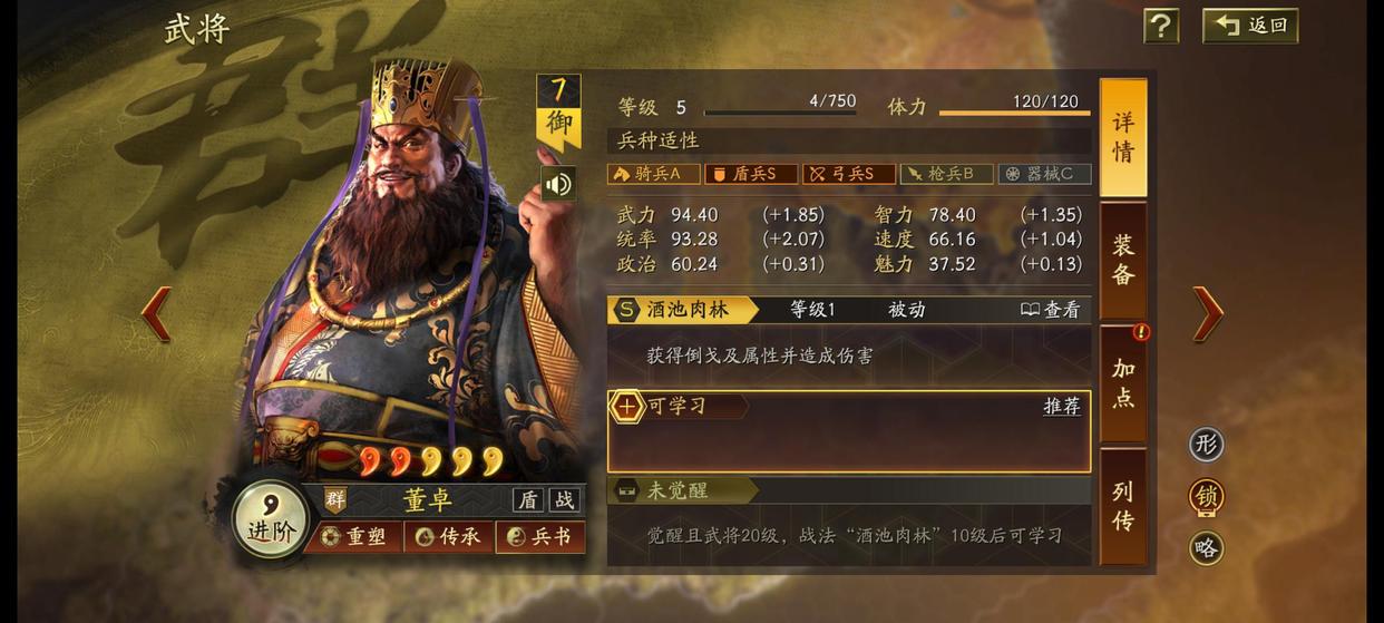 董卓的状态是可以叠加的,八个回合32%倒戈效果、武力80越战越勇的势头!董卓带的队伍越打越上头,智力也是降低80!看在武力的份上,我们就不要纠结智力了!铁定不跟张角、张让、沮授、朱儁等人玩!