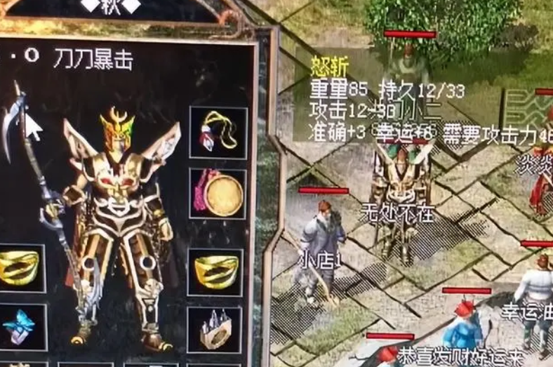 当年他手中拿的是一把攻击12-33,幸运+6的怒斩,还有3点准确,这把武器升到了33点攻击上限,就算是百区也非常难得,6点幸运值再配上一套+3幸运项链就能凑齐运9套了,3点准确属性也如虎添翼。