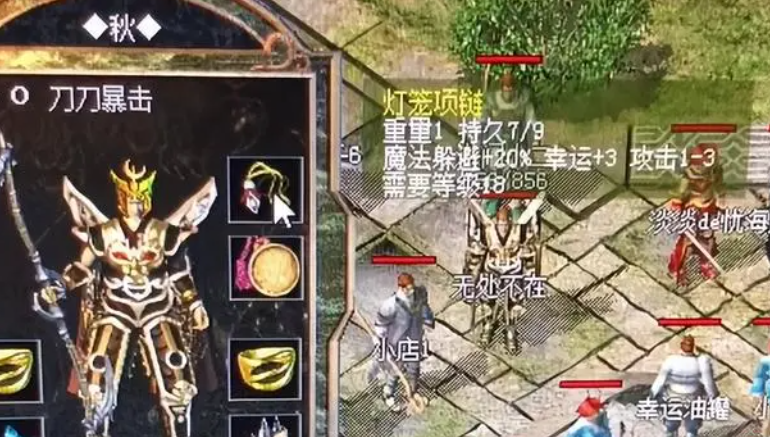 项链他戴的不出意外是一条幸运+3的灯笼项链,而且还有攻击1-3,魔法躲避+20%的属性加成,这么厉害属性的项链,就算再当年的百区也绝对找不到第二条,怪不得让这么多人眼红了。